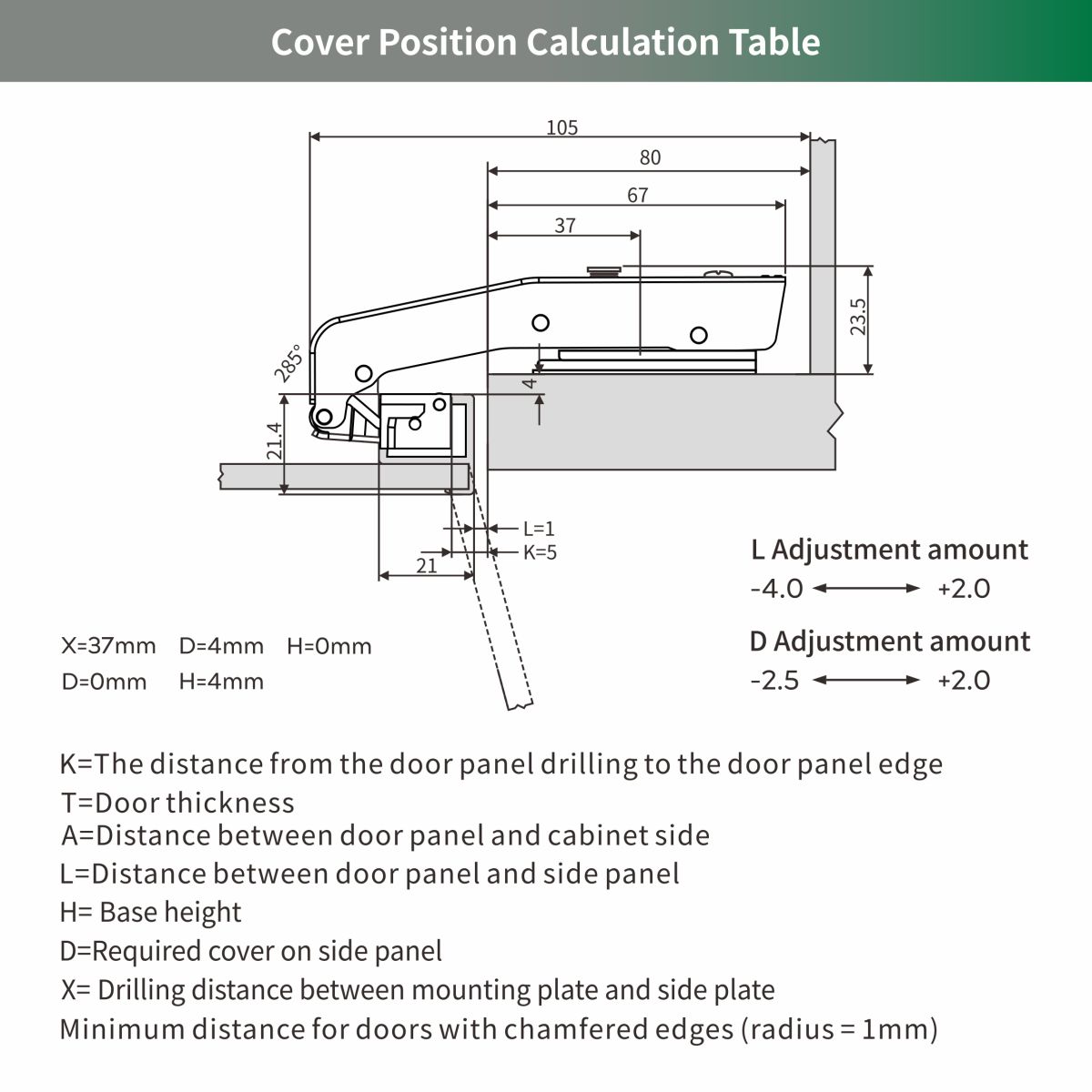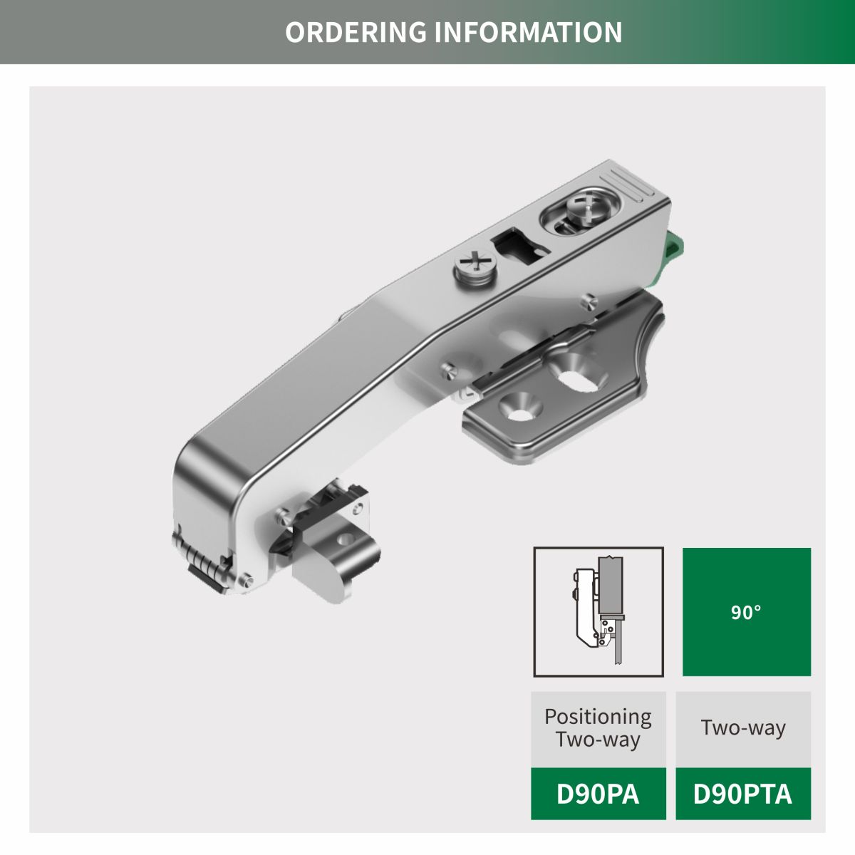 Bản lề đóng êm Khung nhôm góc đặc biệt 90° (Định vị hai chiều / Hai chiều)