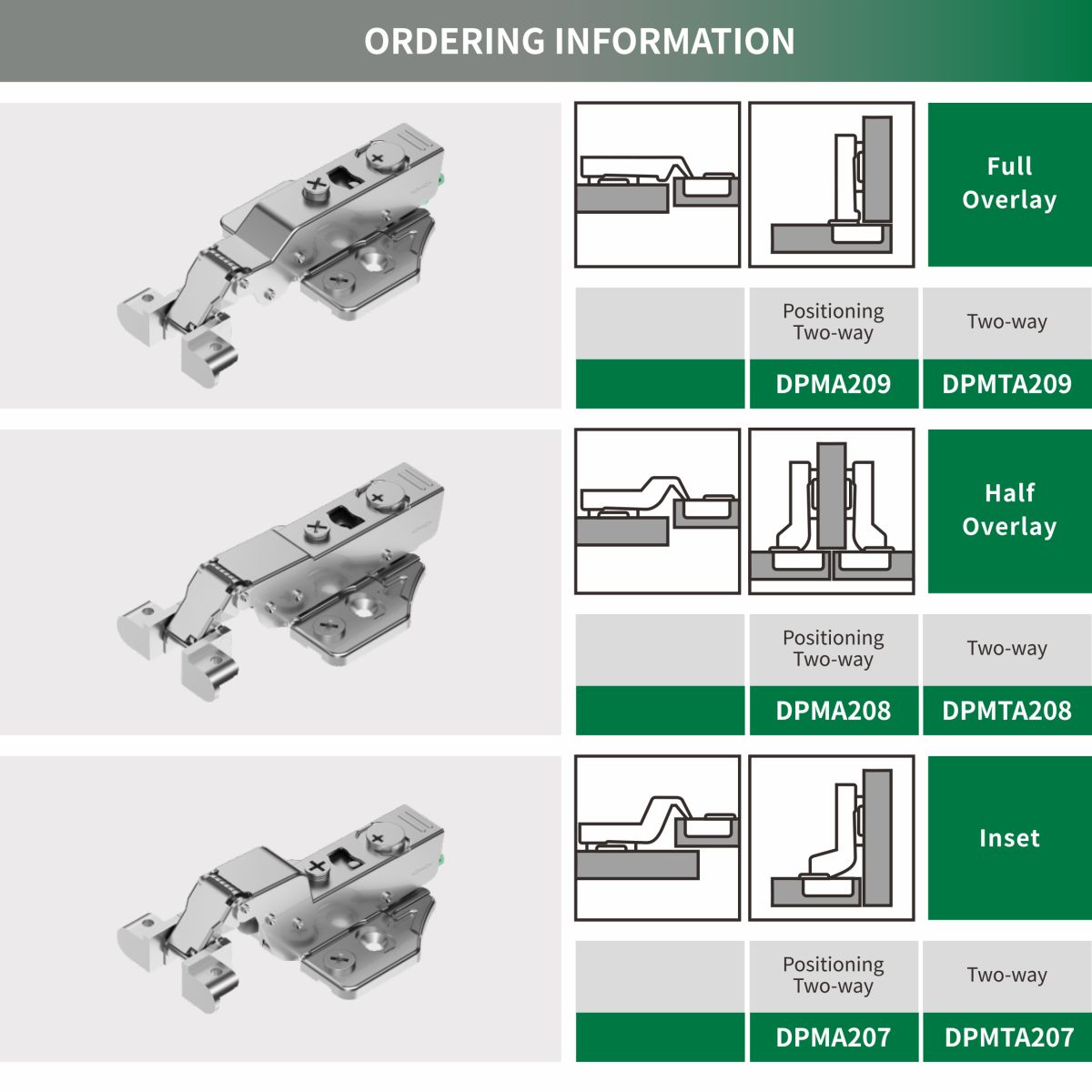 Bản lề đóng êm khung nhôm kẹp với chức năng điều chỉnh 3D (Định vị hai chiều / Hai chiều)